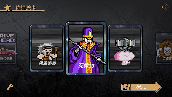 2、在关卡选择界面,您可以左右滑动屏幕浏览不同的关卡。注意,显示角色名称的关卡是boss关卡,您可以在这些关卡中挑战强力敌人。